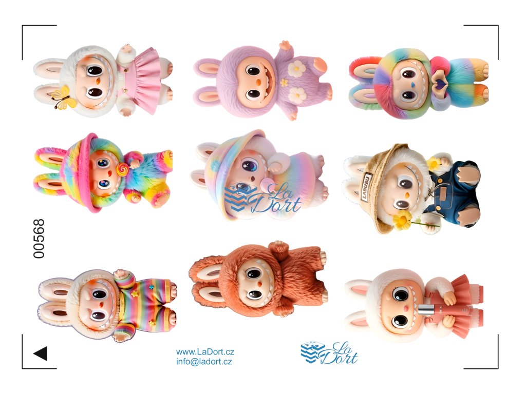 Vstupte do světa rozmanitých a neodolatelných postaviček Labubu z kolekce The Monsters s naším jedlým tiskem! Tento arch je ideální pro narozeninové dorty, cupcakes nebo jakékoli sladkosti pro fanoušky těchto populárních art hraček. Kolekce ukazuje Labubu v široké škále roztomilých převleků a s něžnými výrazy.