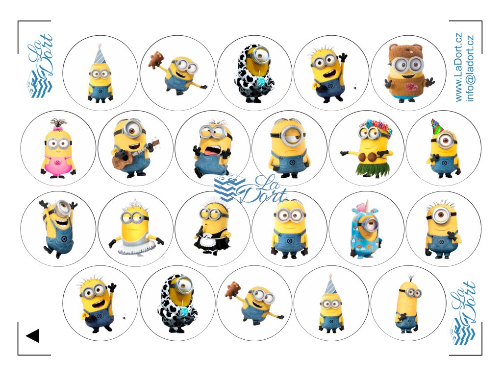Přineste na svou oslavu spoustu zábavy a smíchu s našimi jedlými mini kolečky s motivy Mimoňů! Tento objemný arch obsahuje 22 jednotlivých kulatých motivů, které zachycují oblíbené žluté postavičky v nejrůznějších rozkošných a komických pózách. Ideální pro dětské narozeninové dorty, tematické večírky nebo pro jakékoli sladkosti, které chcete oživit!