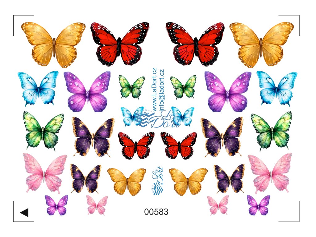 Velikost motivů: Arch obsahuje mix velikostí od velkých (cca 5 cm) až po malé motýlky (cca 2 cm). Celkem je na archu 28 kusů (14 unikátních designů ve dvou zrcadlových vyhotoveních).