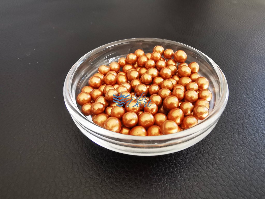 Sladké zdobící krystalky v barvě "Měděná" velikosti 1-2mm. Balení obsahuje 25ml perliček, což je cca 25g. Perličky jsou vyrobeny z cukrové pasty, na povrchu jsou lesklé a mají...