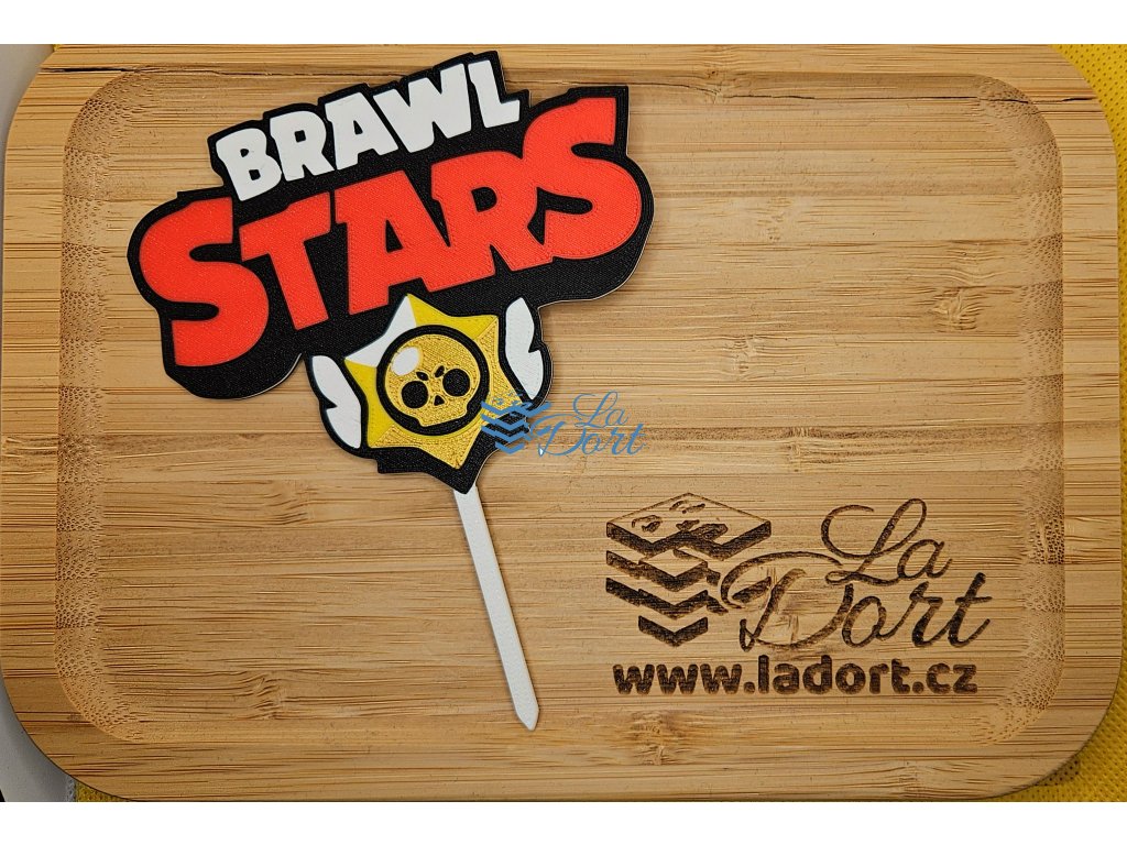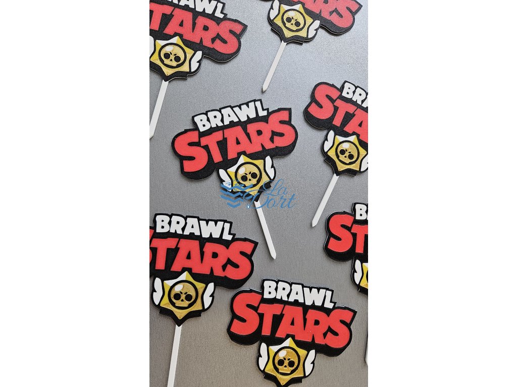 Plně barevný dortový zápich z plastu s motivem loga populární herní série Brawl Stars. Výška zápichu je 125 mm, samotné logo je pak vysoké cca 80 mm a široké 100 mm. Zápich má pískovaný třpytivý povrch.
